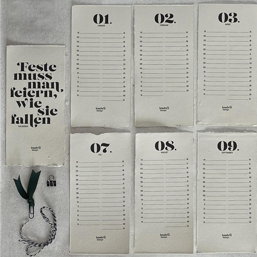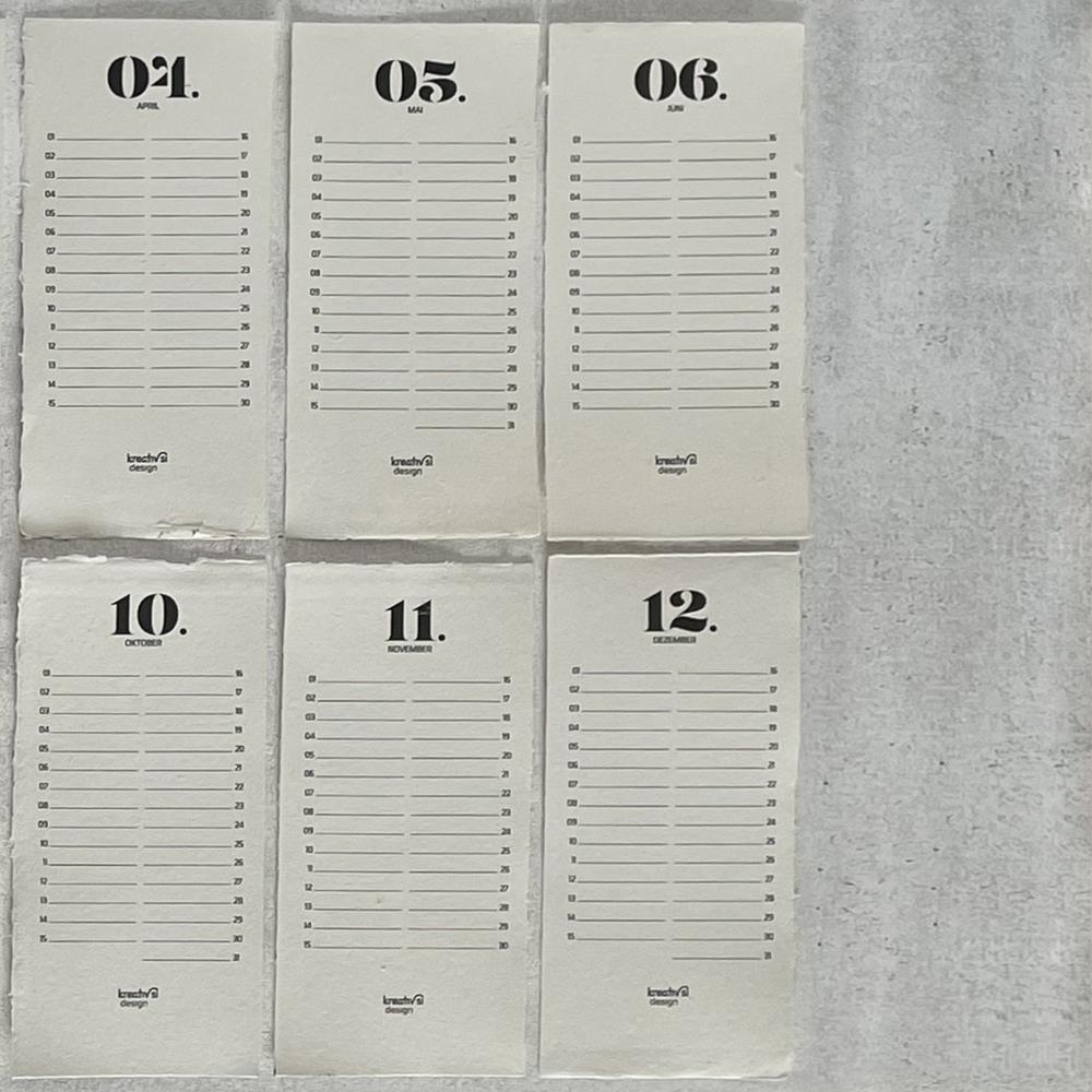 Hochwertiger Kalender im zeitlosen Design für jedes Jahr - Limited Edition - 13 Blatt aus handgeschöpftem Büttenpapier matt 320g . Aufhänger . Marker-Pin für Tagmarkierung . Jedes Produkt ist ein Unikat und kann von der Abbildung abweichen . Die stilvolle Art all deine persönlichen Festtage im Überblick zu behalten.