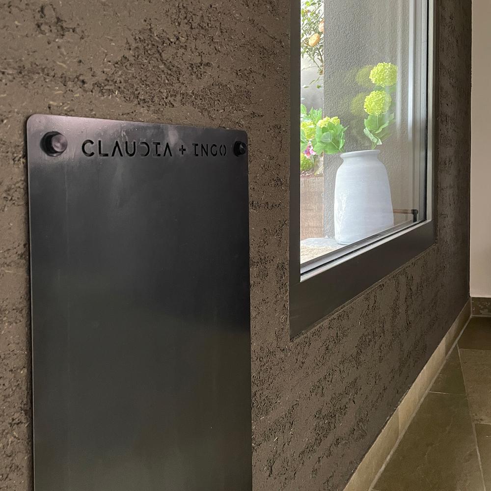 Konzept | Design | Planung für eine extravagante Wandgarderobe aus Rohstahl, die im Zusammenspiel mit maßgeschneiderten Korkteppichen und einer Sitzbank aus geschwärztem Holz jeden Besucher herzlich willkommen heißt - sagt die Hauskatze „Gonzo“.