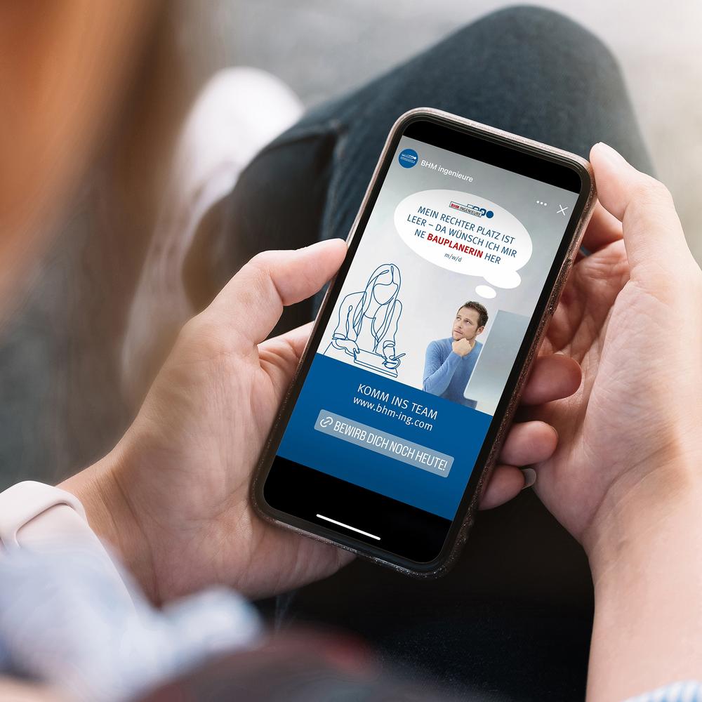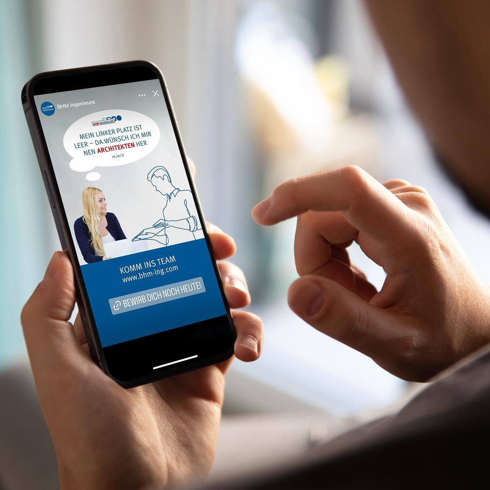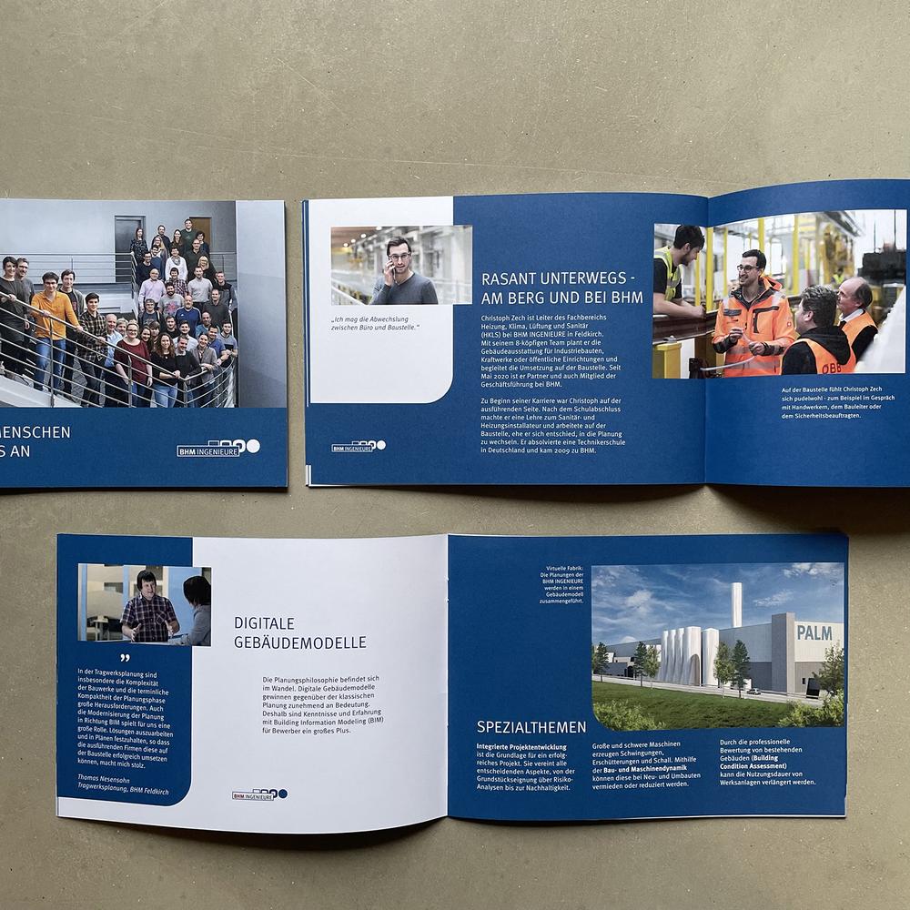 Auf die Menschen kommt es an - Kommunikationskonzept, Design und Gestaltung für analoge und digitale „Mitarbeiter Recruiting Kampagne“ für BHM Ingenieure - Imagebroschüre, Fahrzeugbeschriftungen, Messestand, Transparente sowie Web und Social Media.